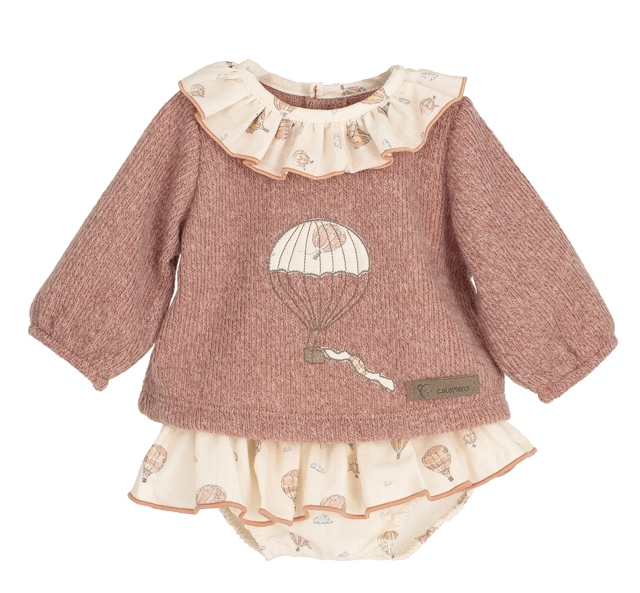 Conjunto pololo  camiseta con volante estampado y pololo a juego.