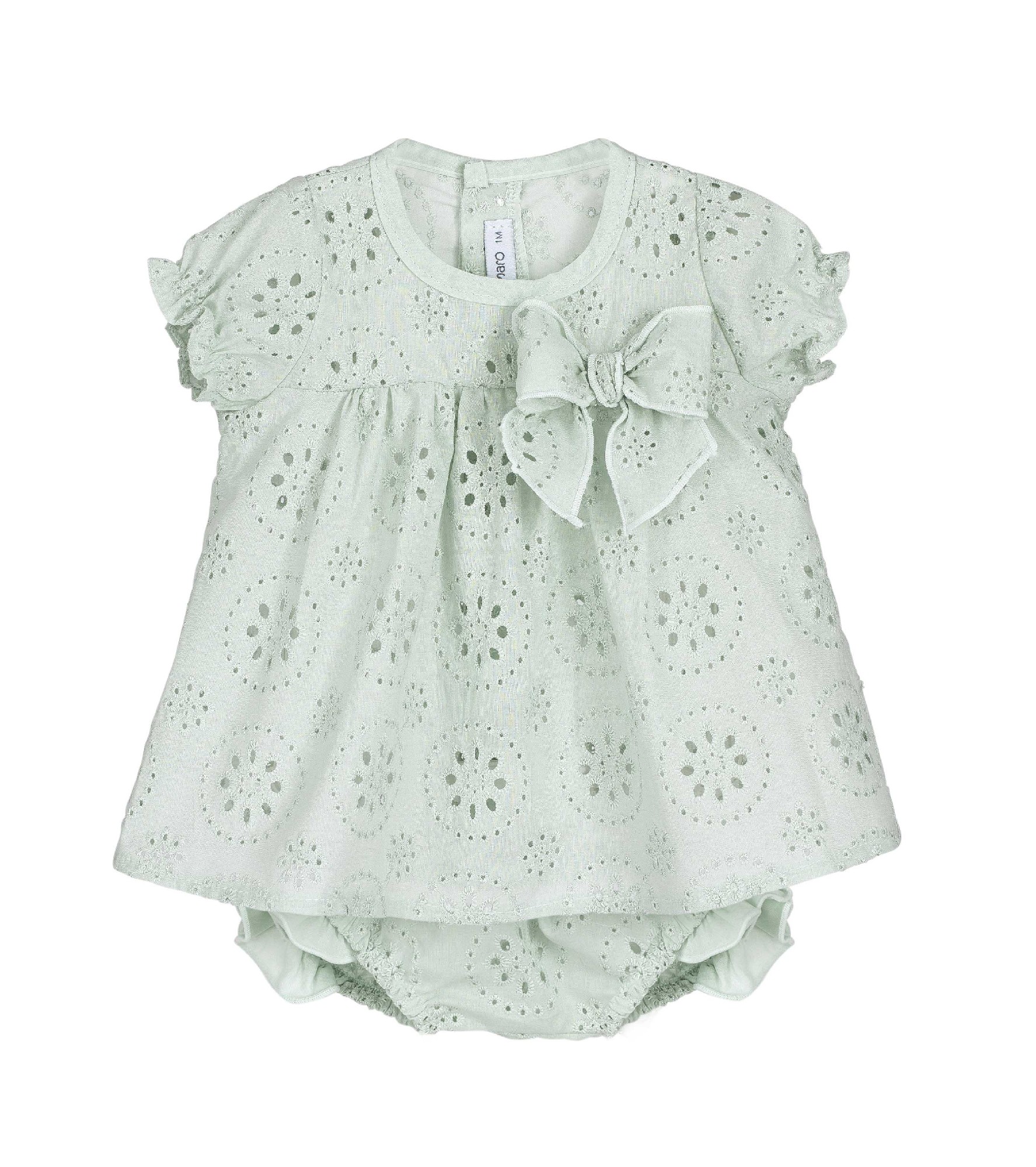 Jesusito de popelin calado haciendo flores en color verde agua, lazo en el delantero del mismo tejido y braga compañera en mismo tejido también, tallas desde 1 mes hasta 36 meses(3años).