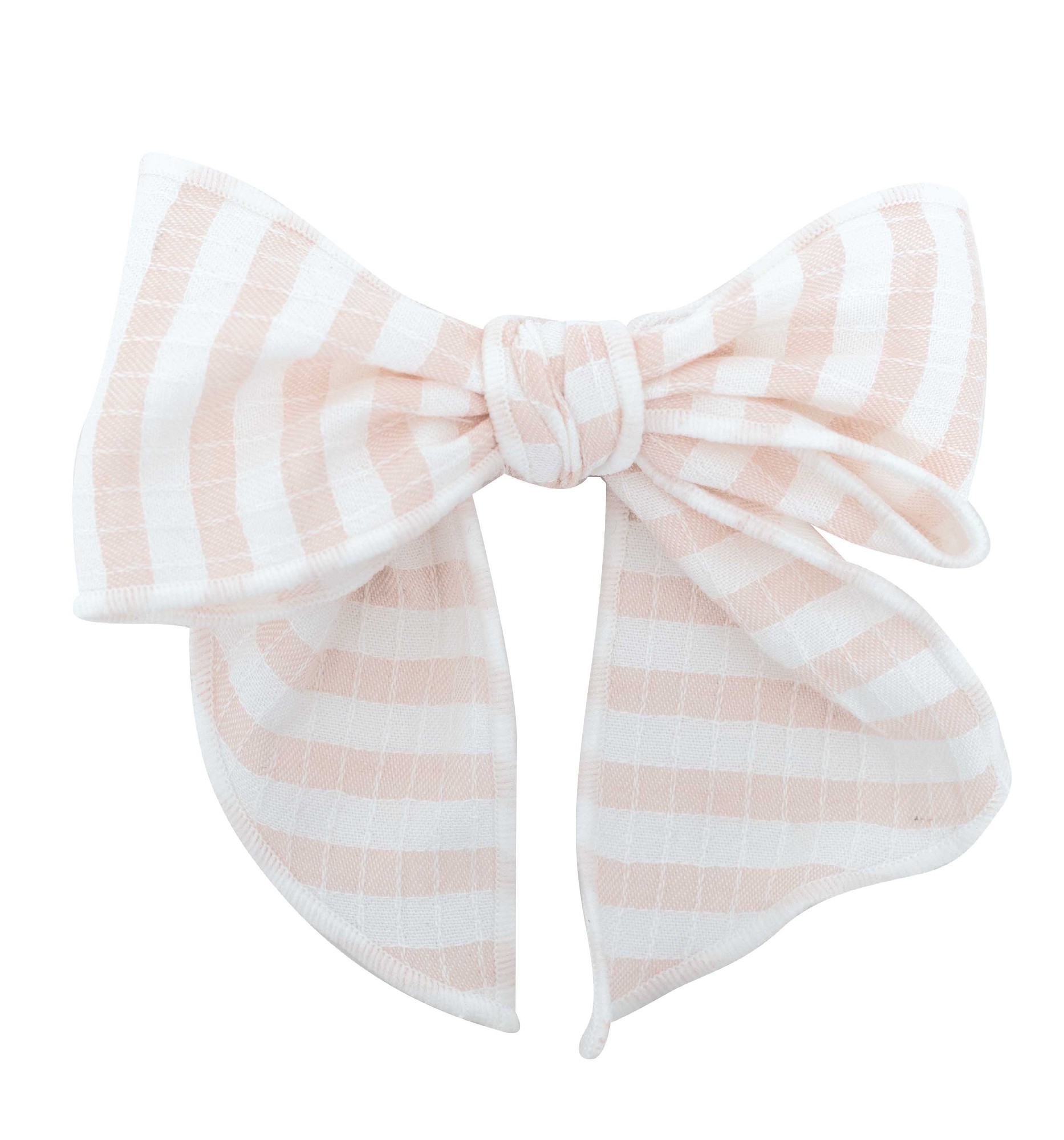Lazo pelo pinza a rayas rosa y blancas a juego jesusito Bundi.