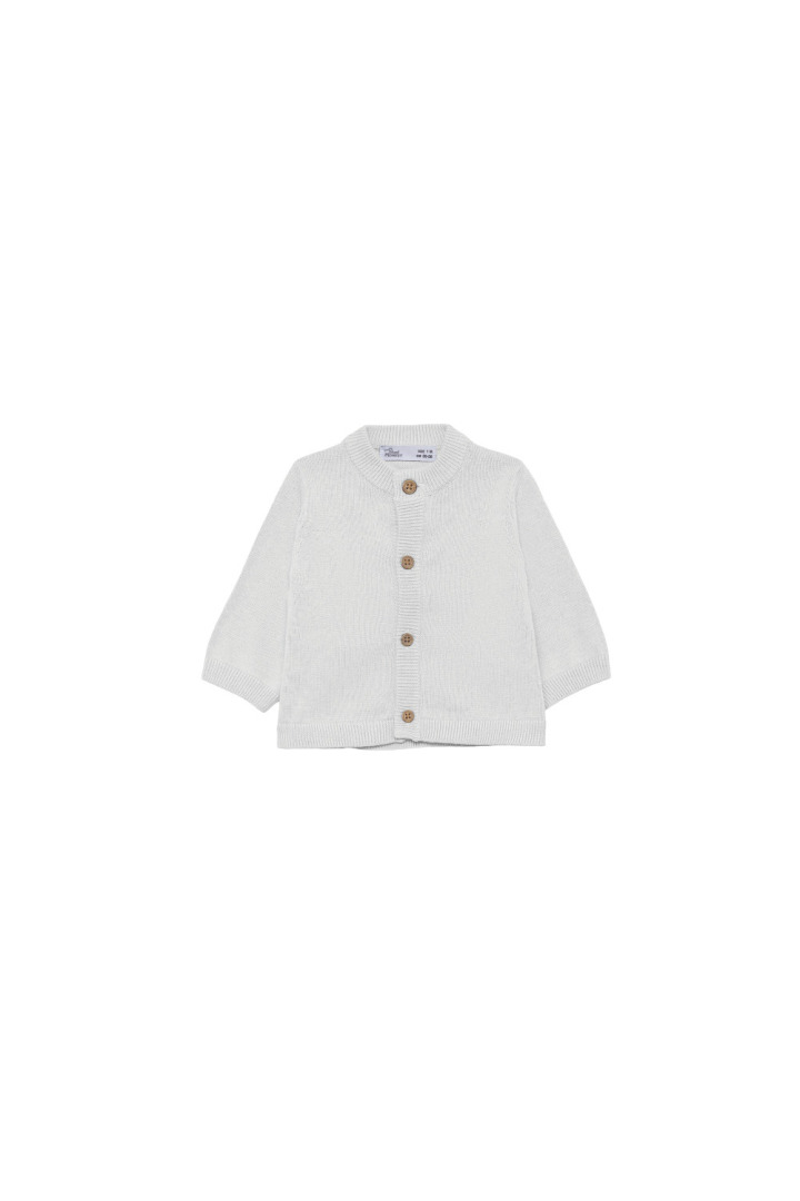 Rebeca punto, cuello a la caja y abertura delantero con botones madera.