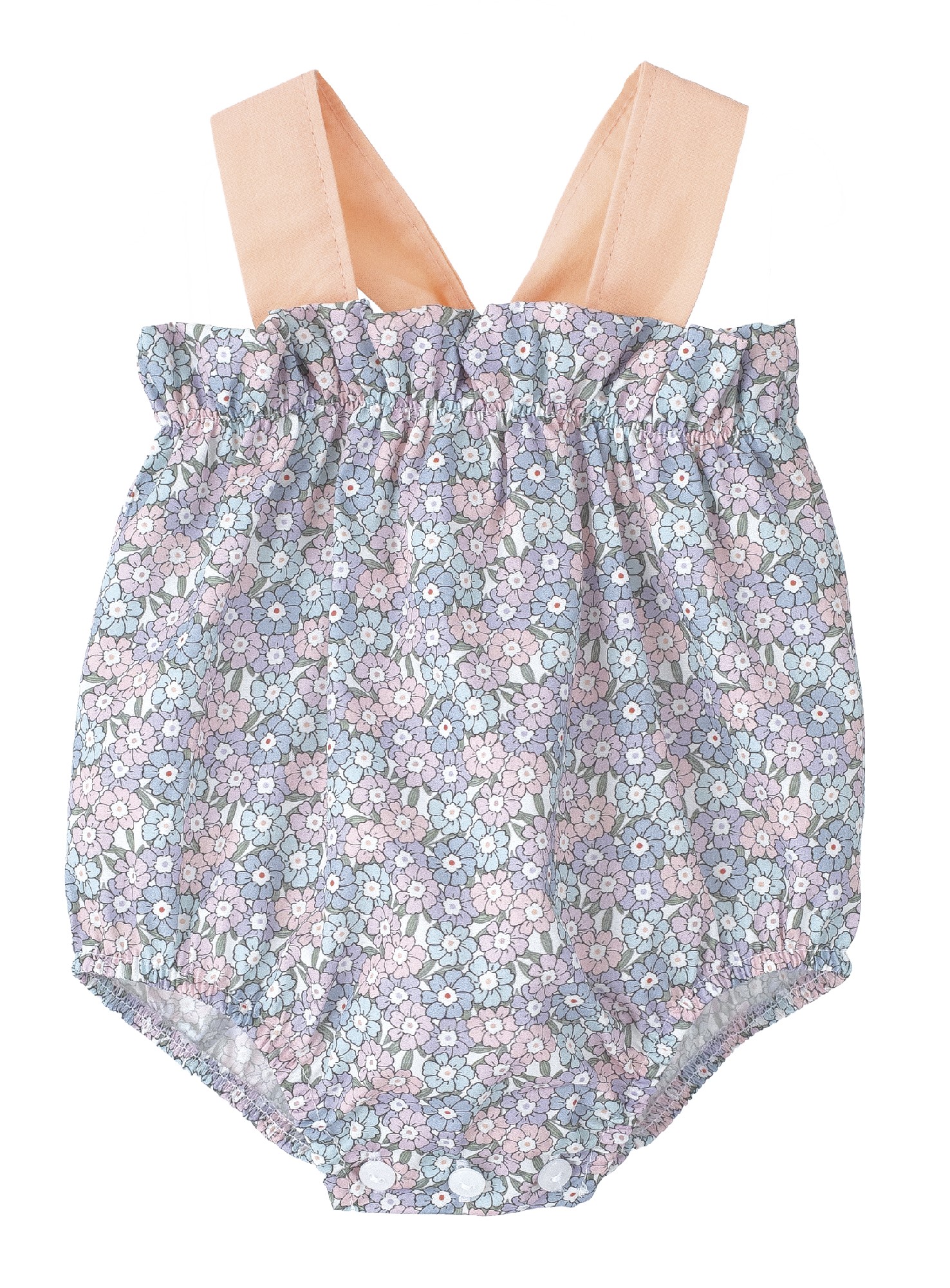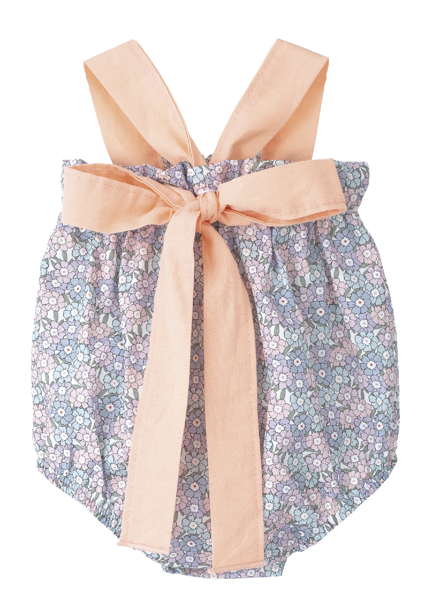 Pelele  tirantes, engomado, y lazo por detrás a juego,  estampado flores.