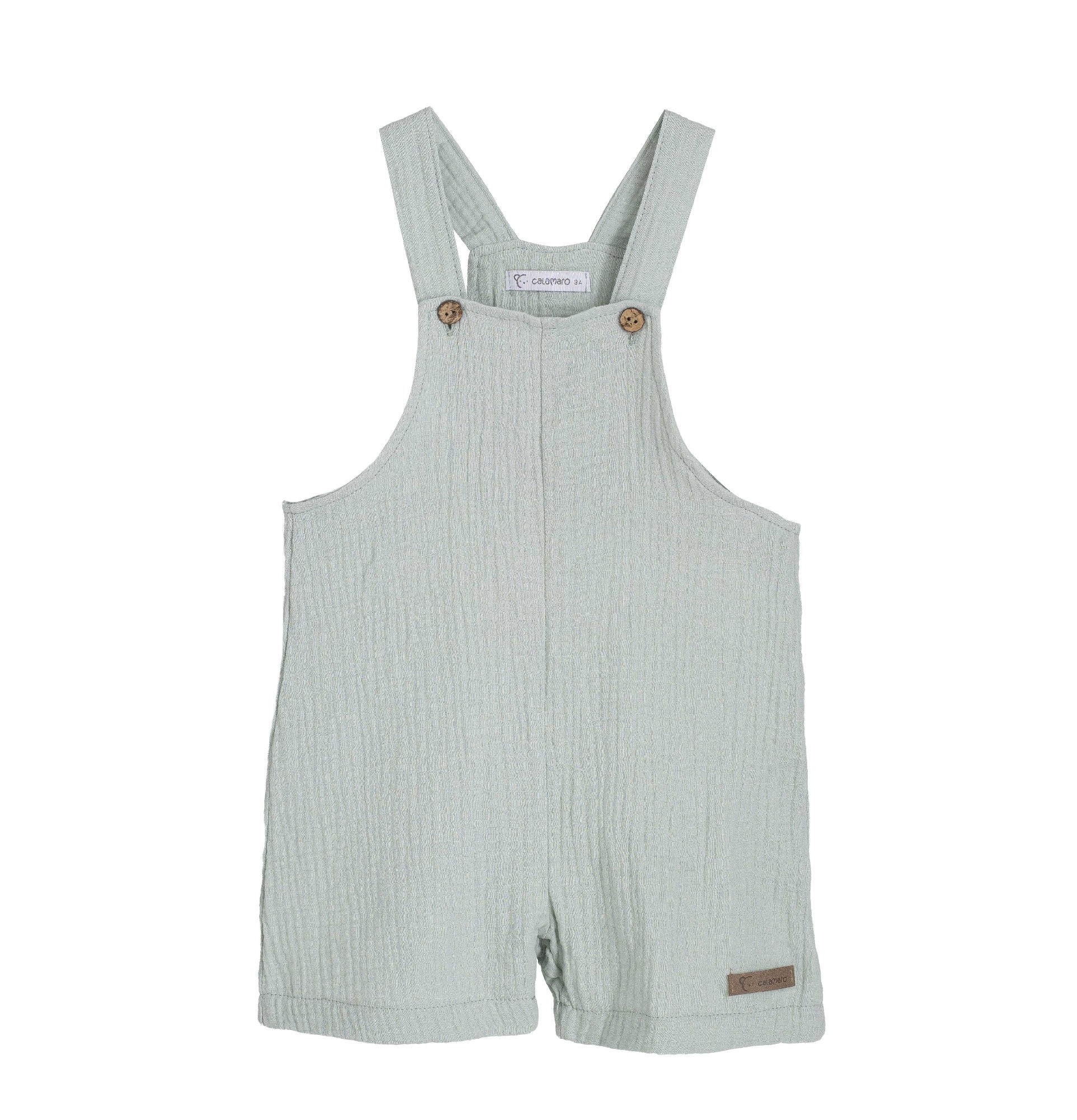 Peto tirantes color verde , botones de madera en tirantes 110% algodón.