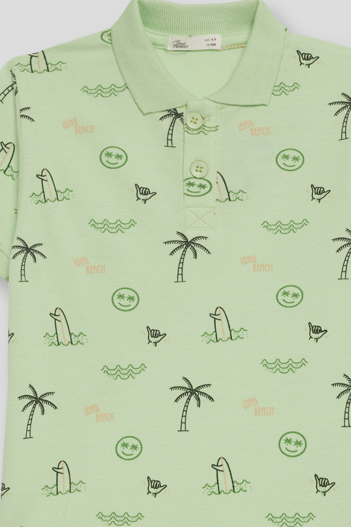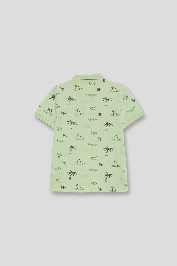 Polo estampado niño, manga corta, cuello polo con tapeta y botones.