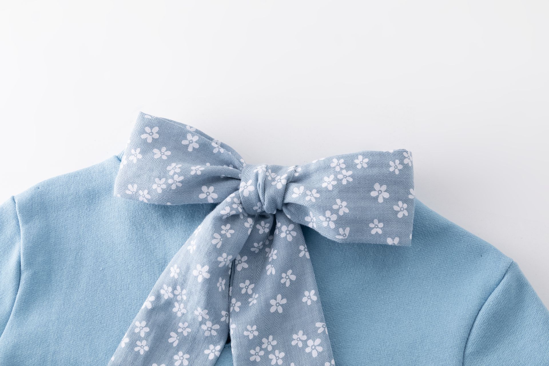 Sudadera con detalle de volante de tejido flores y lazo en la parte trasera.